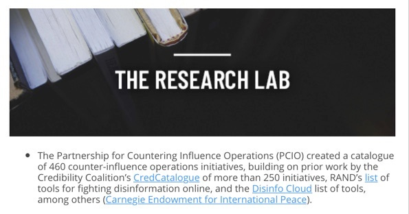 Quickly, it turned out that the “Censorship-Industrial Complex” is far bigger than any of us thought. What our team began calling “The List” has by now surged past 300 organizational names. Moreover, we know the real number is bigger because we’re now familiar with all the attemts of other agencies to perform such counts. In one “DisinfoCloud” digest, paid for by the U.S. State Department and sent fortuitously for us to find in Twitter’s in-box, there’s a report that “The Partnership for Countering Influence Operations (PCIO) created a catalog of 460 counter-influence operations initiatives.” The PCIO study reportedly built on the earlier work of groups like the Rand Corporation and the Credibility Coalition, the latter of which had already counted 250 names.