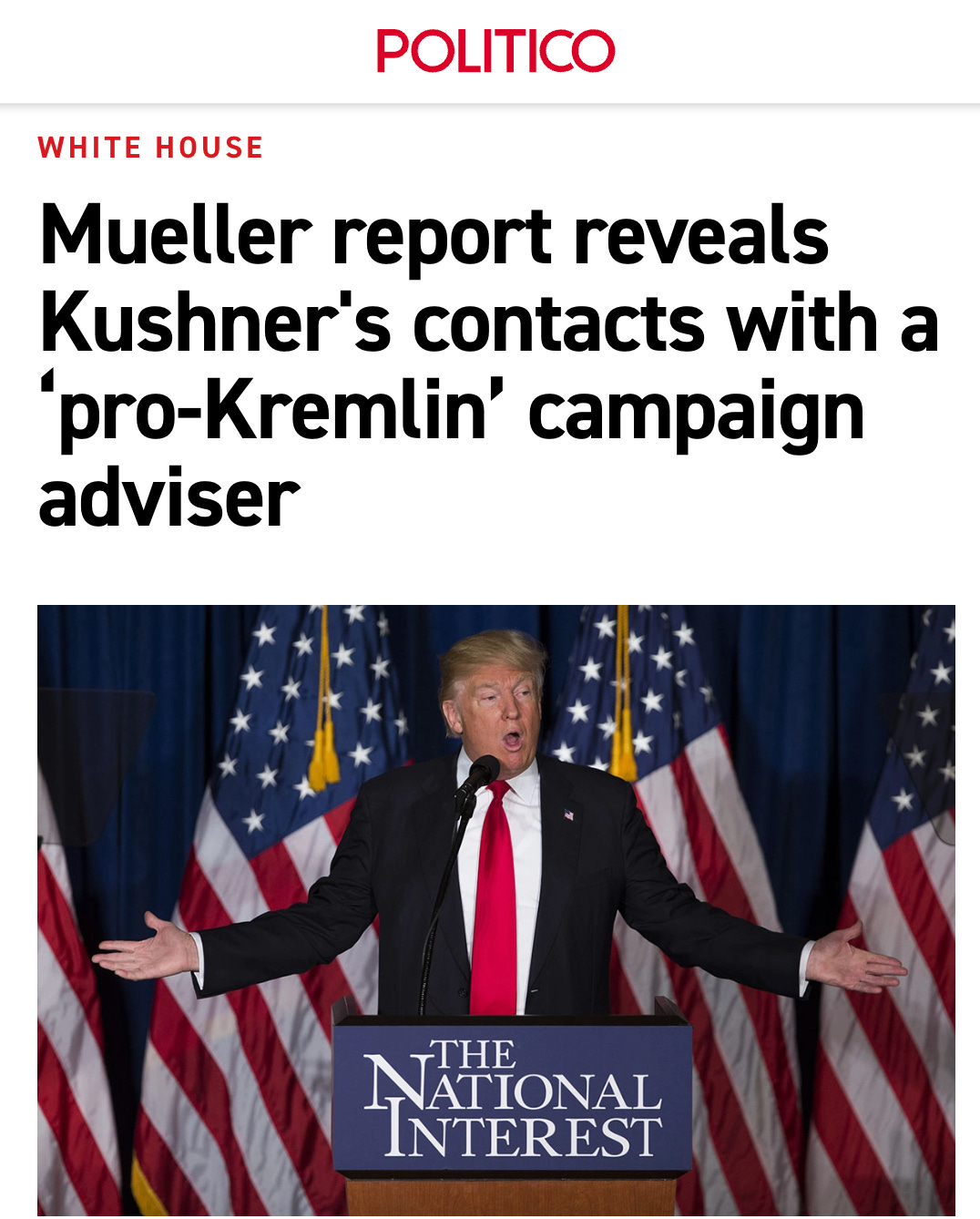 A young guy came up to me, and said that, his name was, Kushner. And that he was pleased to be acquainted, and could we talk sometime? And, I said, sure. And so when, next time I came, to New York, which was in a couple of weeks, we got together, and then at the end of the conversation, he said, ‘You know, we have a possible project for you. Would you be interested in Trump delivering a foreign policy speech at the center?’