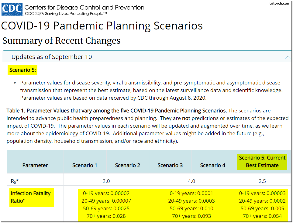 In September 2020, this was the CDC's best estimate for the COVID-19 Infection Fatality Rate by Age Group: