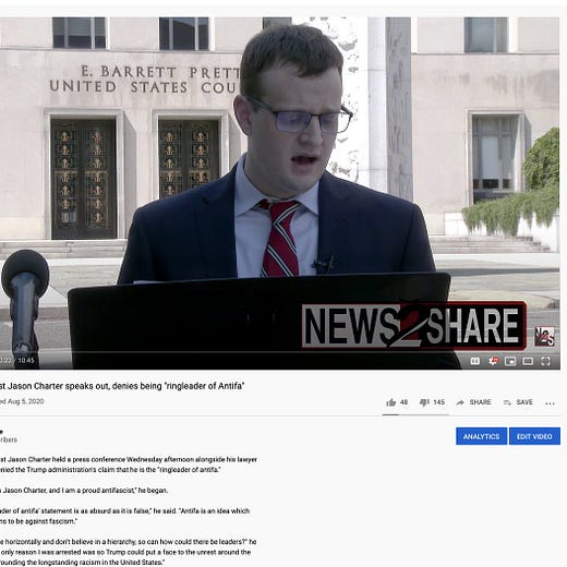 A couple of Youtube examples: I filmed an Antifa activist give a press conference with his lawyer. Literally just talking. With a lawyer. Youtube slapped it with hate speech and graphic violence labels: