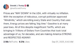 Meanwhile, President Trump recently proclaimed in a Truth Social post that, “Prices are WAY DOWN in the USA with virtually no inflation.”