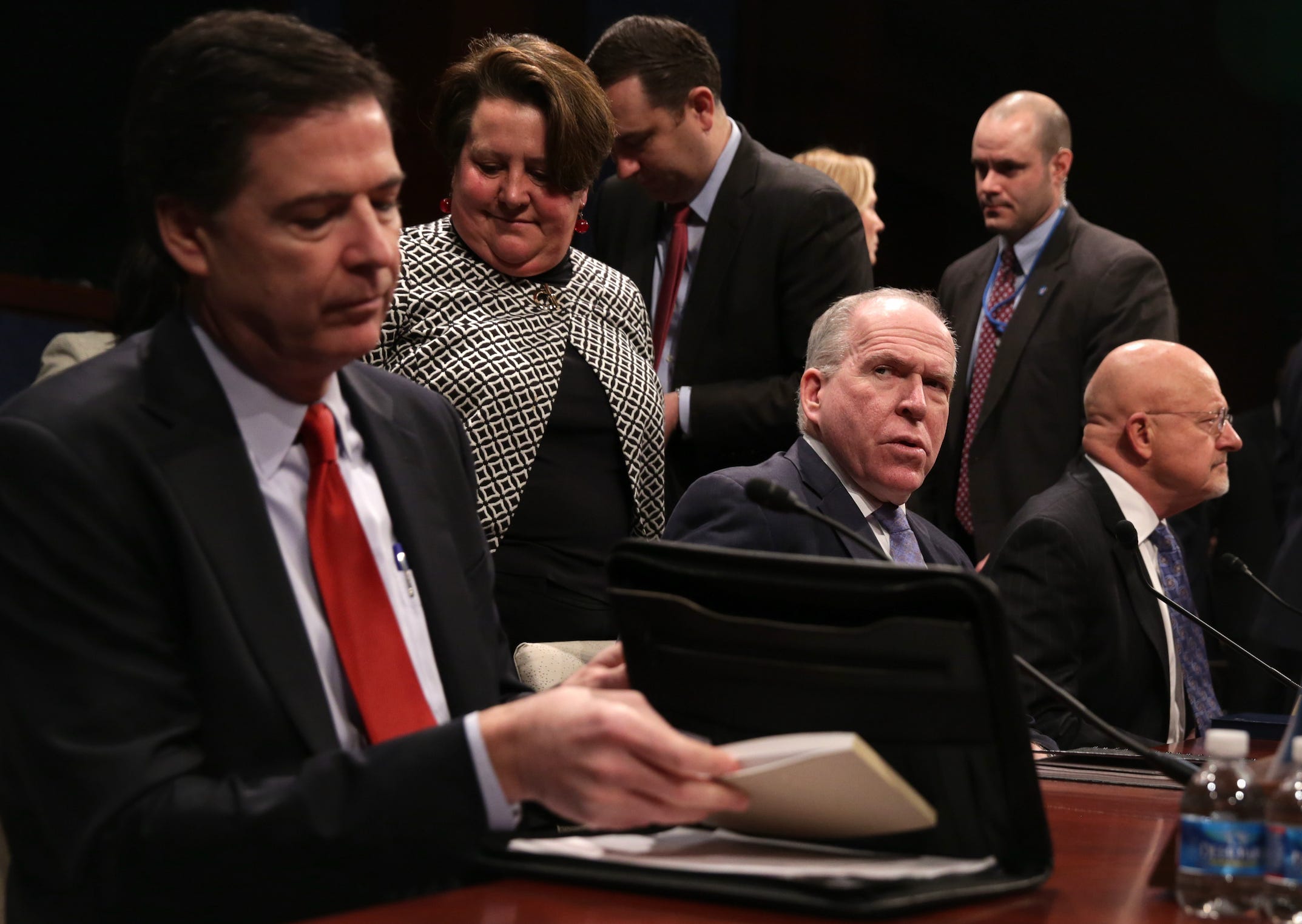 The image of Brennan in “Take my wife, please” mode fits the moment, as Walter and I will discuss on tomorrow’s America This Week. There is a definite rats-fleeing-a-sinking-ship vibe around the original protagonists in this story. Brennan and Clapper pointed fingers at Comey in a remarkably poisonous “It wasn’t us!” editorial in the New York Times; former National Security Adviser Susan Rice wore out the all-caps function in one of a series of nervy tweets on this topic; and John Kerry “protected” his social media record. This is all in addition to once-ubiquitous CIA spokesperson Susan Miller’s “Yeah, that’s the ticket” act about having authored or directed the Intelligence Community Assessment team blowing up yesterday in bizarre fashion.