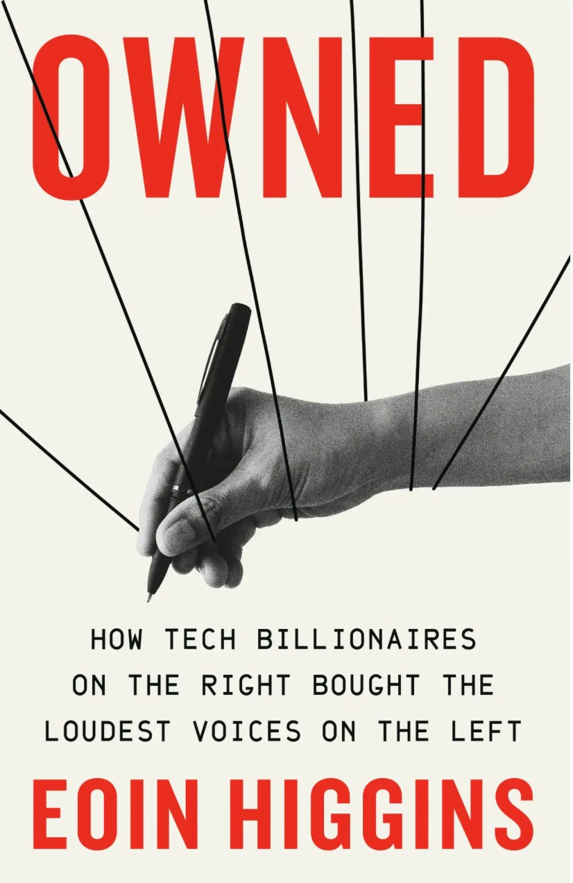 Recently author Eoin Higgins took to his Substack platform to complain, “Yes, I’m Being Sued by Matt Taibbi.” He wrote a book called Owned with a cover illustration showing marionette strings controlling people like me and Glenn Greenwald, the main subjects of his book, depicted me as “bought” by “tech billionaires on the right.” Though I’ve never taken any money from “tech billionaires on the right” and am entirely dependent on subscribers to this site, the suit was something Higgins felt needed celebrating.
