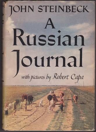 Spoiler alert, it was a wonderful trip, and no one was “captured.” I won’t bore you with most of it. Instead, I hope to reacquaint you with ordinary Russian people at this moment in time. As I pondered this idea, I remembered a 1949 classic by the novelist John Steinbeck, “A Russian Journal.” I occasionally thought of this slim book as we took our Red Square selfies, or struggled to talk politics over dinners with friends. Then, on the last day of our trip, with a pleasant jolt of recognition, I saw my own long-lost copy on my father-in-law’s bookshelf.