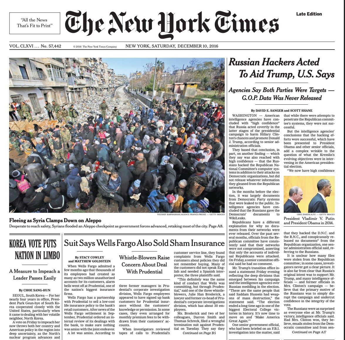 So yes, Savage agreed, the sole piece of evidence on which the judgment that Putin “aspired” to help Trump was thirdhand, rejected intelligence of disputed meaning that was also incorrectly labeled as warranting “high confidence.” There is a but passage coming, but it’s worth pausing to note what Savage conceded about the evidentiary basis for countless New York Times stories, including an A1 bombshell put together online on December 9th, 2016, hours after Barack Obama ordered the writing of the new Assessment. In the next day’s print edition, it was headlined: “Russian Hackers Acted to Aid Trump, U.S. Says.”