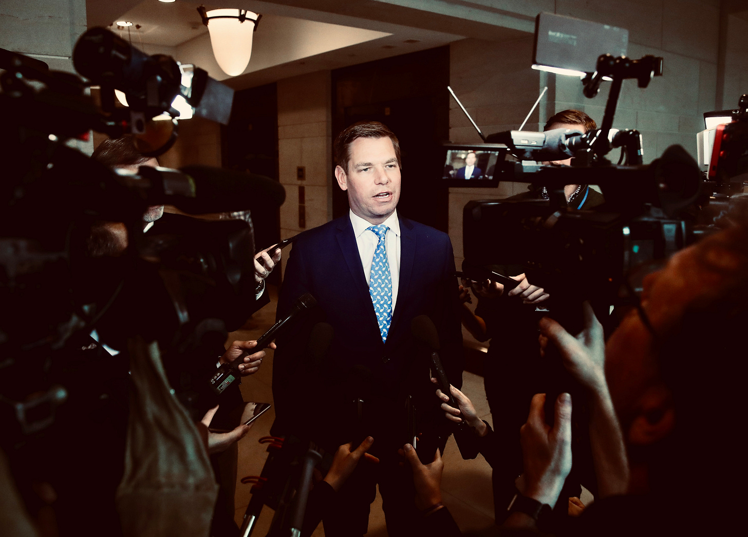 MEMBER: Eric Swalwell, D-Calif. — 7-term congressman, former presidential candidate (first Dem to drop out in the 2020 presidential race), was frontrunner in California governor race moments ago.