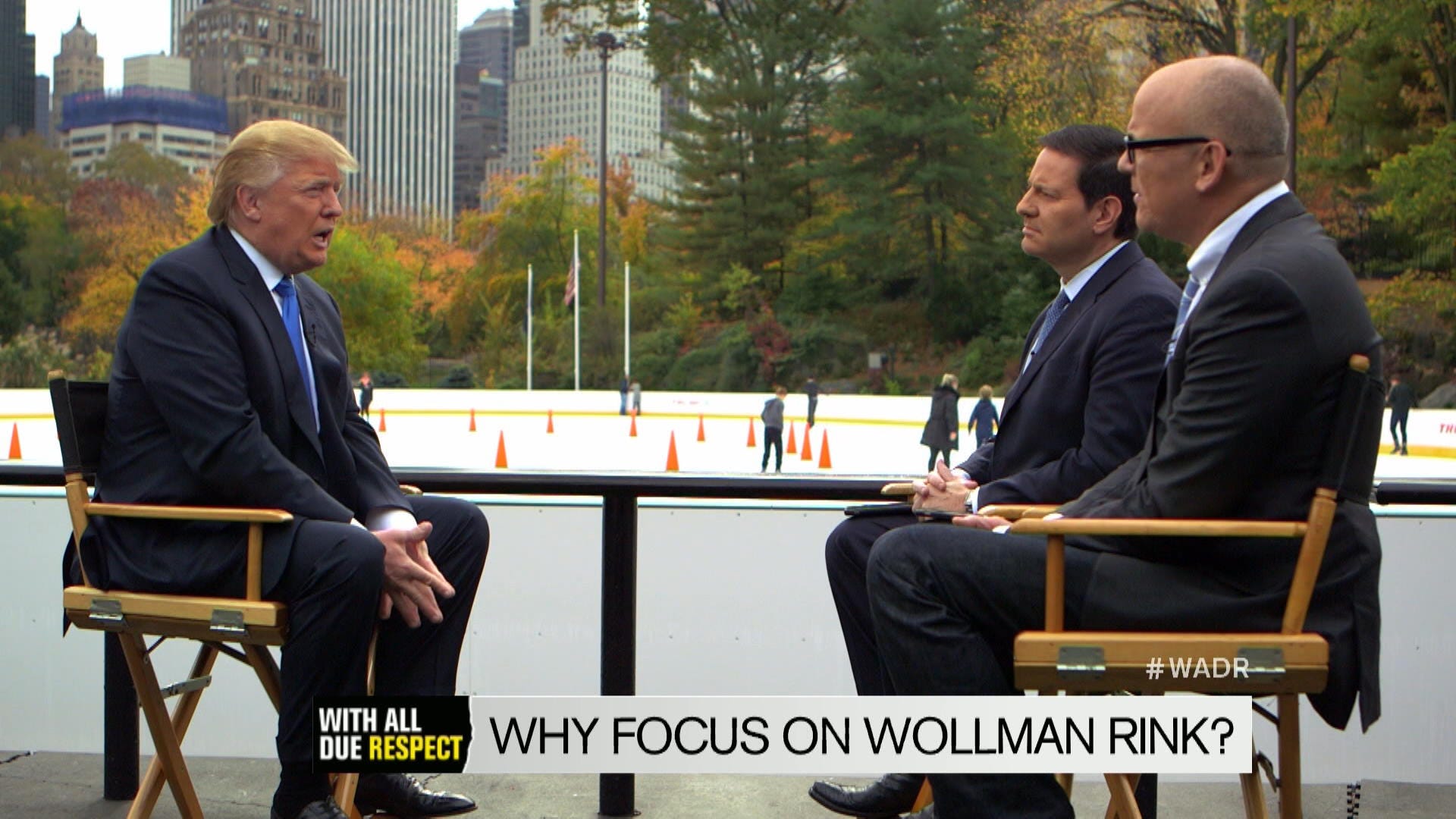 You can go back in time and see Heilemann and Halperin riding around the Wolfman ice rink in Manhattan on a big Zamboni emblazoned TRUMP with Trump himself. The two dorks in suits sheepishly asked him hard-hitting questions about whether or not he was nervous before an upcoming Saturday Night Live spot. “How are you feeling about it?” they asked, adding, “Do you skate?”