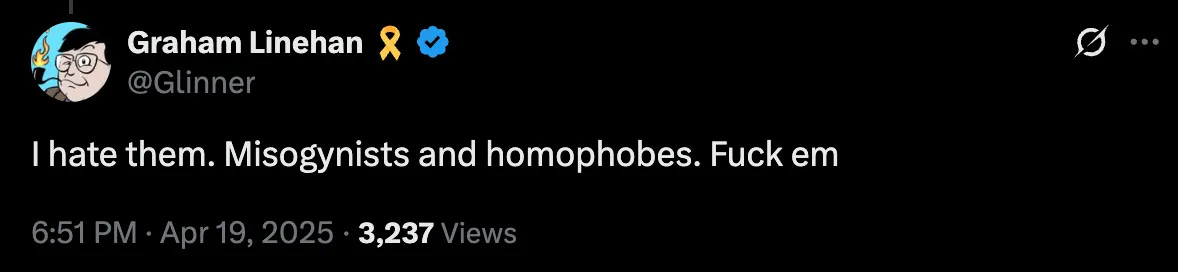 Linehan is already scheduled go to trial Thursday on a harassment charge related to other social media posts he made last October. He wrote about Monday’s arrest and the followup interrogation on his Substack, The Glinner Update: