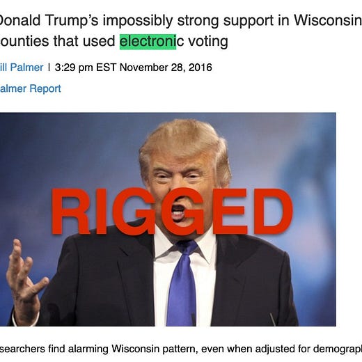 What do we think the storylines would be right now if Trump had won? What would those aforementioned figures be saying on channels like MSNBC and CNN, about what would they be speculating? Does anyone for a moment imagine that YouTube, Twitter, or Facebook would block efforts from those people to raise doubts about that hypothetical election result?
