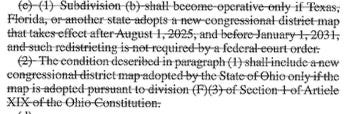 California lawmakers approve Newsom’s proposal, but make a significant change. The original legislation said the new districts “shall become operative only if Texas, Florida, or another state adopts a new congressional district map that takes effect after Aug. 1, 2025 and before January 1, 2031.” Lawmakers struck that language: