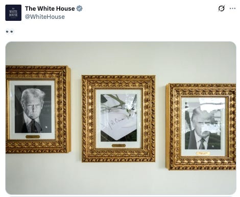 A new display of presidential portraits debuts outside the West Wing, but in place of Biden’s face is a framed picture of an autopen signing Biden’s name.