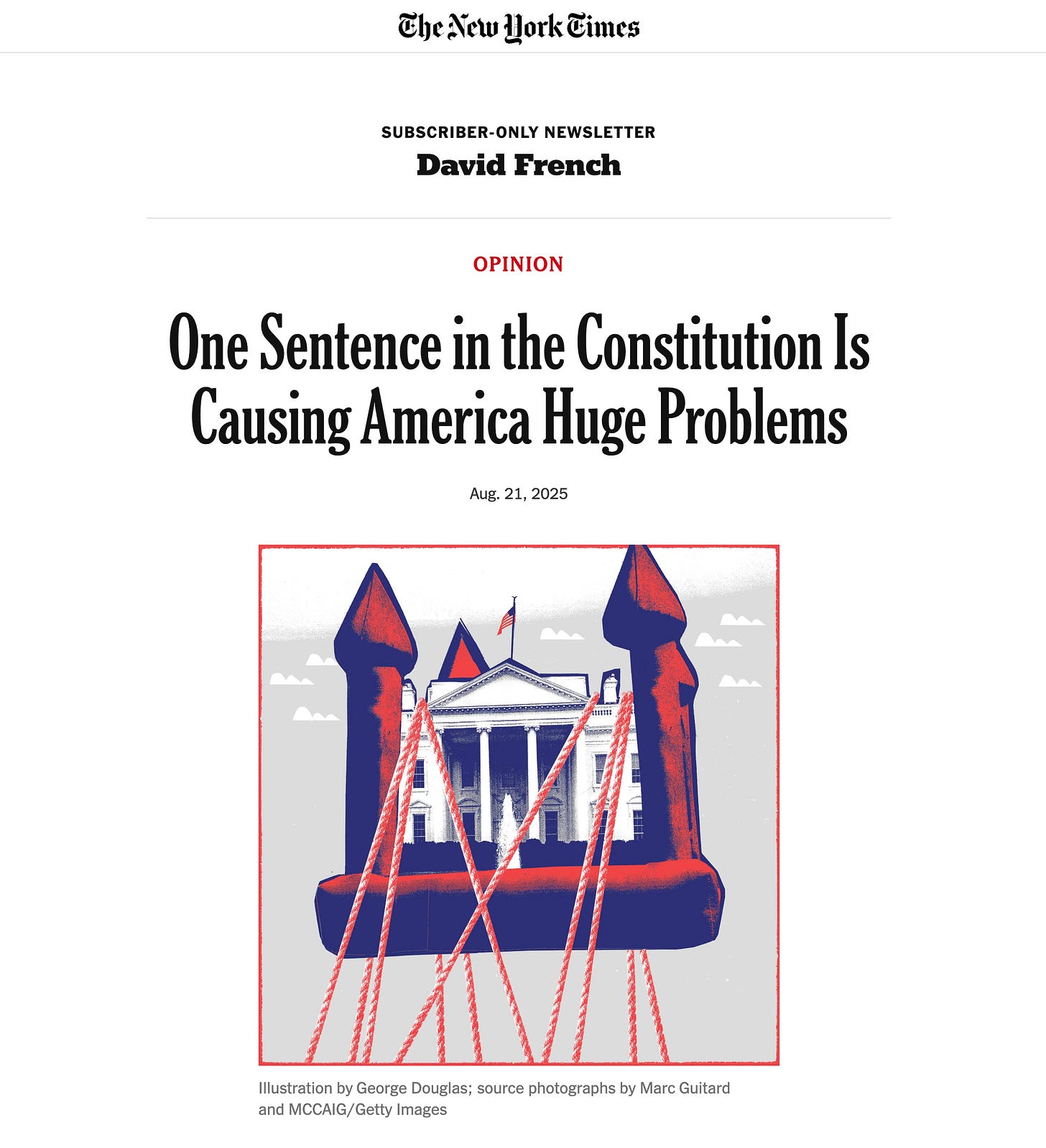 Matt Taibbi: Yeah. And they have a slight proposal that has just come out, a small one, nothing serious, but this was by David French this morning. If we could take a look. One sentence in the Constitution is causing America huge problems.